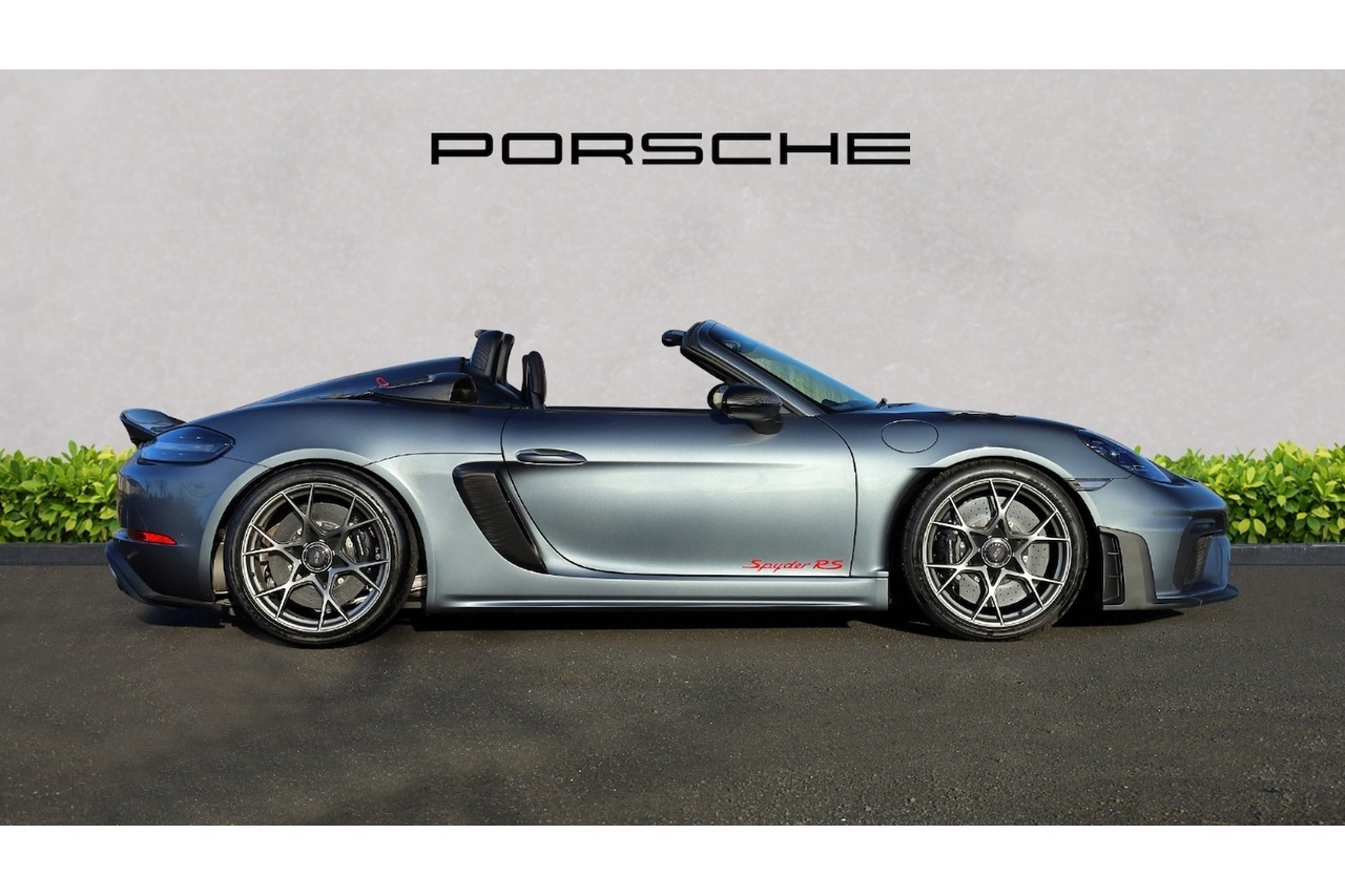 2024 718 Spyder RS Presented in Vanadium Grey Metallic with Weissach Pack Interior in Black Alcantara / Leather with Carmine Red Accents