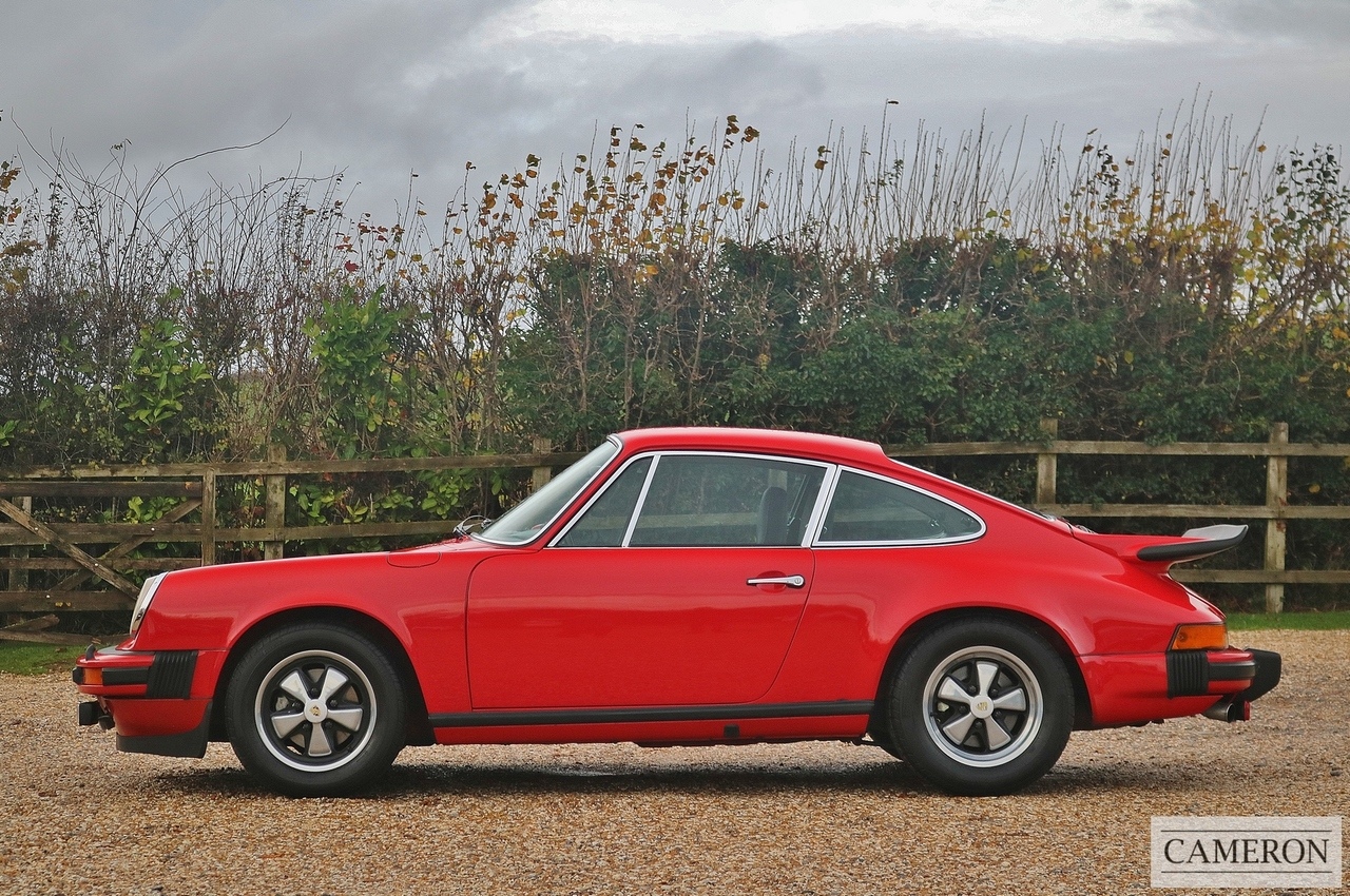 First registered on the 8th March 1976, to a Mr. A. Malcolm of the Isle of Man by AFN Porsche, Isleworth. The car offered here is a matching numbers, UK, Carrera 3 finished in Guards Red with Black Leatherette with Blue / Red Tartan Inserts.